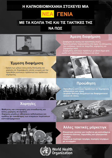 - Σε αντίθεση με τις δημόσιες υποσχέσεις για διαφημιστικά σποτάκια για τον περιορισμό του καπνίσματος (ακόμη και με συμμετοχή γνωστού διεθνούς μπασκετμπολίστα) που δεν τηρήθηκαν, η ανεξέλεγκτη και παραπλανητική διαφήμιση καπνικών προϊόντων λαμβάνει τεράστιες διαστάσεις σε πολλά σημεία πώλησης, ακόμη και κοντά σε σχολεία. Κάτι που έρχεται σε αντίθεση και με το μήνυμα της φετινής Παγκόσμιας Ημέρας που είναι η ευαισθητοποίηση στις μεθόδους της καπνοβιομηχανίας για να προσελκύσει ανήλικους.
